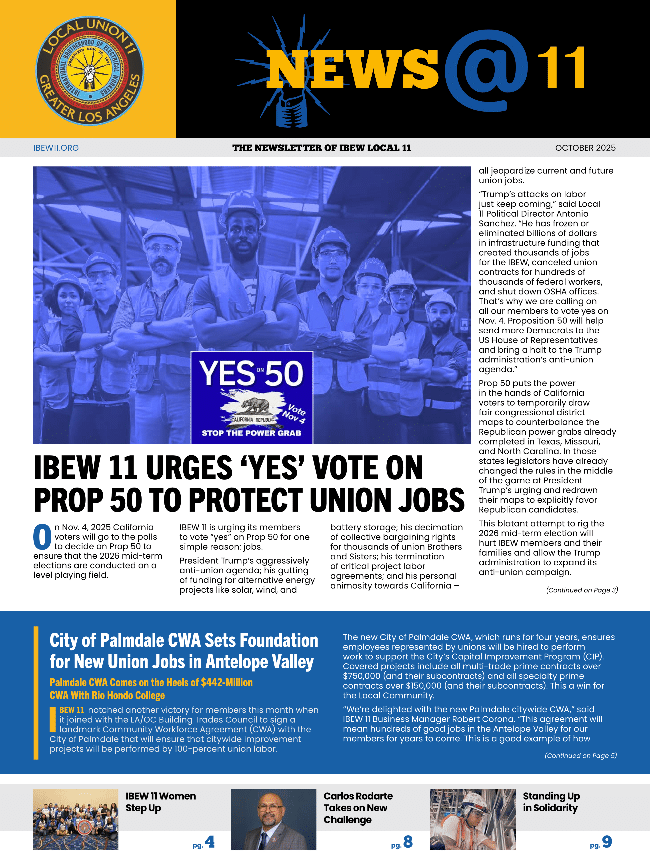 Click here to read the October edition of News @ 11 featuring YES on Prop 50; Playing the Jobs Long Game; Tradeswomen Take Chicago By Storm; Union Picnic Photos. . .and more!
