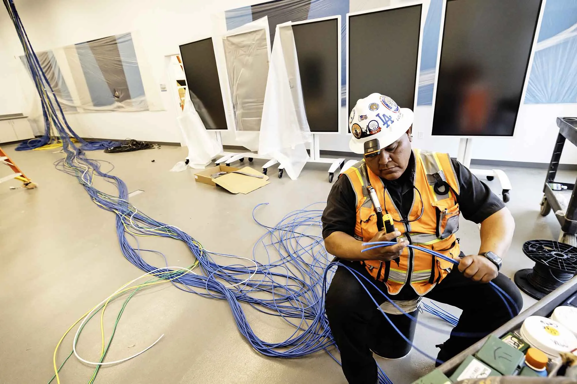 Taft Superintendent Brandon Parlopino is a fourth-generation IBEW member, third generation Local 11. He’s spent 15 years in the union and has worked on projects including the new Staples Center scoreboard in 2010, the Dodger Stadium renovations in 2020, the Secret Life of Pets ride at Universal Studios and the two Long Beach towers. But nothing has been like this.